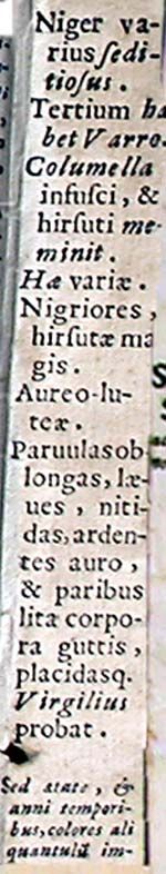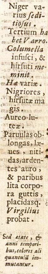 Parvulas oblongas, laeves, nitidas, ardentes auro, et paribus lita corpora guttis, placidasque Virgilius probat.