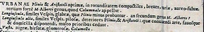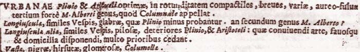 Longiusculae, similes Vespis, glabrae, quae Plinio minus probantur, an secundum genus M. Alberto?167