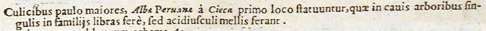 Culicibus paulo maiores, Albae Peruanae a Cieca primo loco statuuntur, quae incavis arboribus singulis in familiis libras fere, sed acidiusculi mellis ferant.212