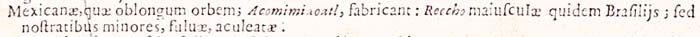 213. «Hae enim oblongo orbe fabricato, quem Acomimiaoatl vocant, mellificare consueverunt.», in Rerum Medicarum Novae Hispaniae Thesaurus seu plantarum animalium mineralium Mexicanorum historia ex Francisci Hernandez Novi Orbis medici primarii relationibus in ipsa Mexicana Urbe conscriptis a Nardo Antonio Recchio [...] collecta ac in ordinem digesta a Ioanne Terrentio Lynceo [...] notis illustrata [...], op. cit., p. 334.