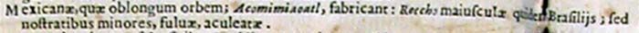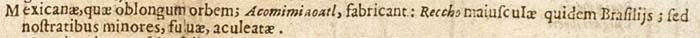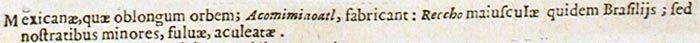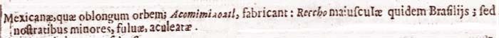 Mexicanae, quae oblongum orbem; Acomimiaoatl, fabricant: Reccho maiusculae quidem Brasiliis; sed nostratibus minores, fulvae, aculeatae.213