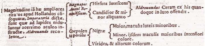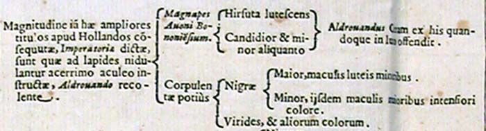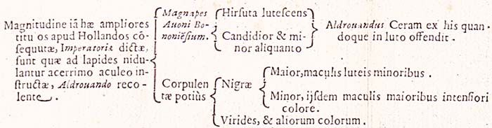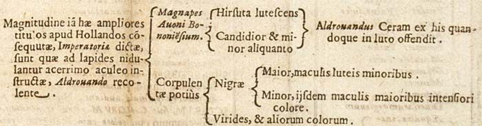 Magnitudine iam hae ampliores titulos apud Hollandos consequutae, Imperatoriae dictae, sunt quae ad lapides nidulantur acerrimo aculeo instructae, Aldrovando recolente216