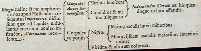218. Si veda anche quanto riportato dal medesimo Aldrovandi poco sotto la precedente citazione nello stesso De animalibus insectis alla p. 191.