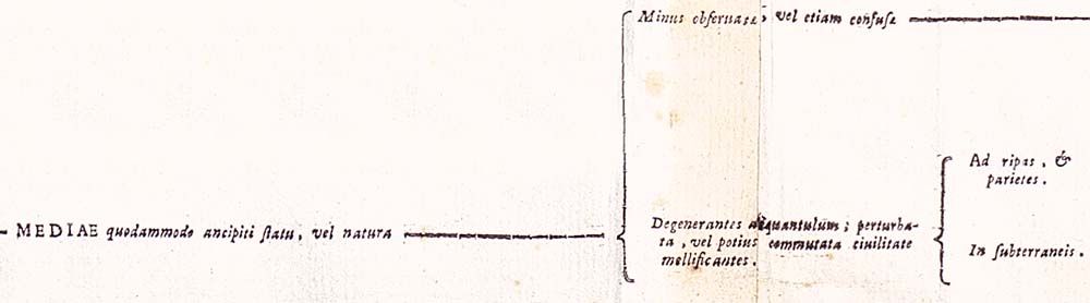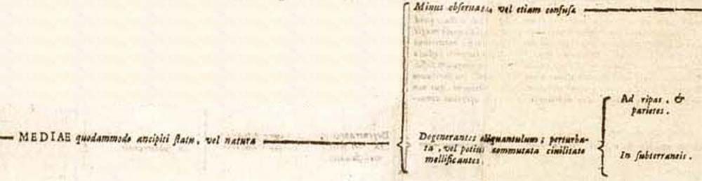 220. L'adozione del termine Mediae deriva ancora da Alberto Magno e, in particolare, rappresenta una specificazione del suo quarto genere di api. Sotto questo termine si cela il riferimento -come del resto Alberto stesso ricordava- al genere di api che i greci chiamavano 'ibrido'. Cfr. Divi Alberti Magni de Animalibus libri vigintisex novissime impressi, op. cit., p. 79v.