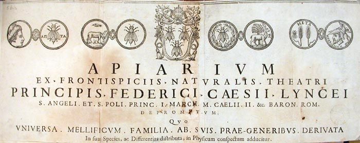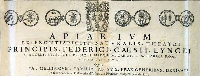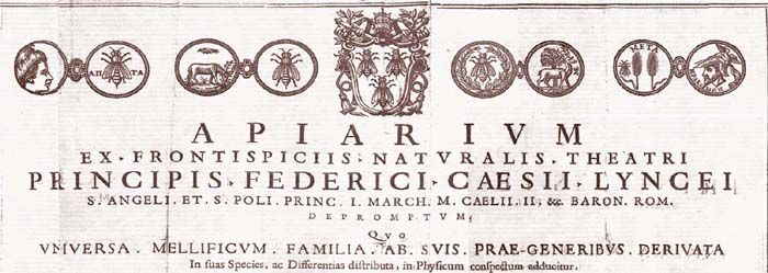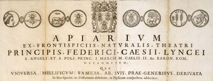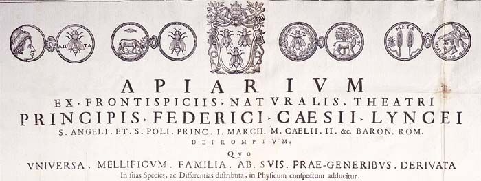 Apiario tratto dai frontespizi del Teatro della natura di Federico Cesi, Linceo, primo Principe di Sant'Angelo e di S. Polo, secondo Marchese di Monticelli, Barone romano, dove l'intera famiglia dei produttori di miele, derivata dalle sue prime generazioni, ordinata secondo le sue specie e differenze, è proposta nelle sue apparenze naturali.